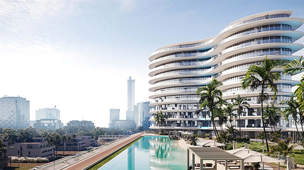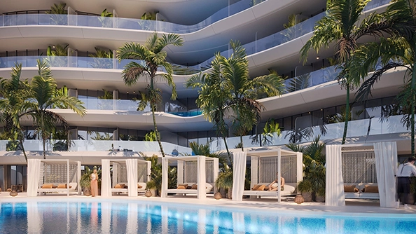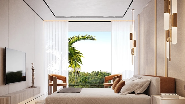 The project features studio, 1-bedroom, and 2-bedroom apartments designed to maximize natural light and space. Select units include private pools, offering a resort-style living experience.